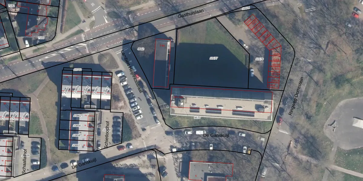 Het perceel waarop Lambert Heijnricsstraat 10-G staat heeft een oppervlakte van 1500 m². Dit is een zeer groot perceel. De perceeloppervlakte wordt geregistreerd door het Kadaster. Gedetailleerde informatie over de maten van dit perceel kunt u vinden in het rapport Kadastrale kaart met maatvoering van Lambert Heijnricsstraat 10-G.
