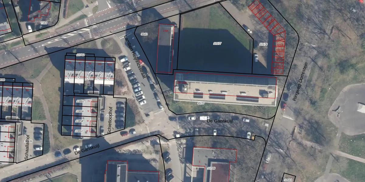 Het adres is gelegen op perceel 9570 in de sectie B en de kadastrale gemeente Amersfoort. De kadastrale aanduiding is aldus AMF00-B-9570. De oppervlakte van het perceel is 1500 m². Dat is groter dan gemiddeld in Amersfoort, waar de gemiddelde perceeloppervlakte op 959,8 m² ligt. Het grootste perceel in de kadastrale gemeente is 1,12 km². Het kleinste perceel heeft een oppervlakte van 0 m². Er zijn 72 adressen aanwezig op het perceel. In de Basisregistratie Kadaster (BRK) werden de grenzen van het perceel geregistreerd op 02-05-2011.