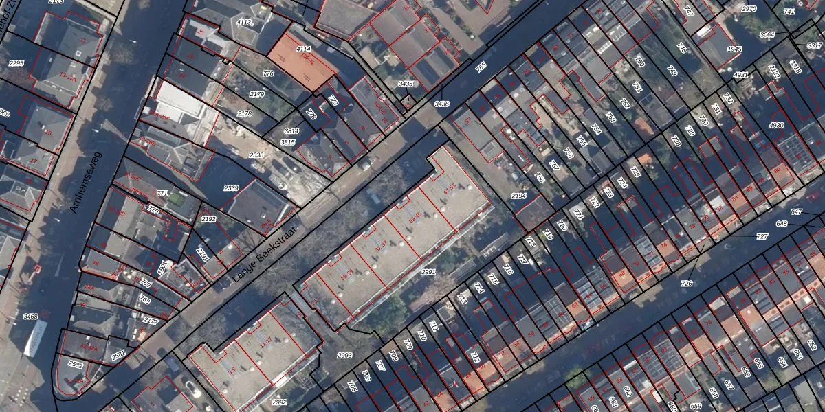 Lange Beekstraat 45 is gelegen op kadastraal perceel AMF00H2991. Deze kadastrale aanduiding is uniek en wordt gebruikt door het Kadaster om eigendomsrechten en andere zakelijke rechten vast te leggen. Het perceel maakt onderdeel uit van de kadastrale gemeente Amersfoort.