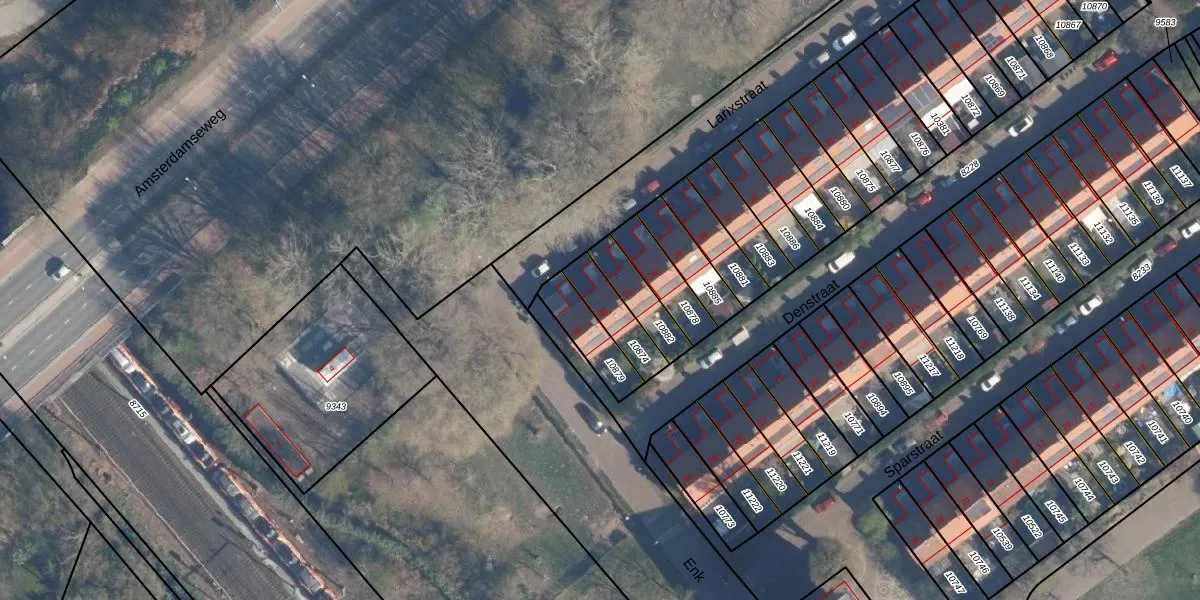 Larixstraat 32 is gelegen op kadastraal perceel AMF00D10874. Deze kadastrale aanduiding is uniek en wordt gebruikt door het Kadaster om eigendomsrechten en andere zakelijke rechten vast te leggen. Het perceel maakt onderdeel uit van de kadastrale gemeente Amersfoort.
