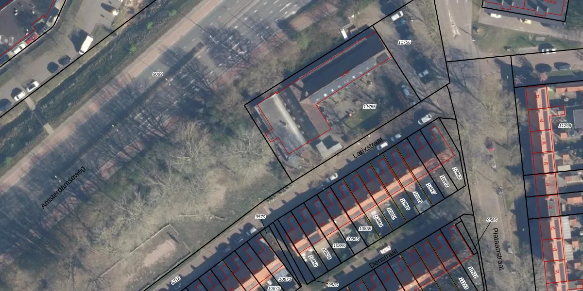 Larixstraat 61 is gelegen op kadastraal perceel AMF00D11755. Deze kadastrale aanduiding is uniek en wordt gebruikt door het Kadaster om eigendomsrechten en andere zakelijke rechten vast te leggen. Het perceel maakt onderdeel uit van de kadastrale gemeente Amersfoort.