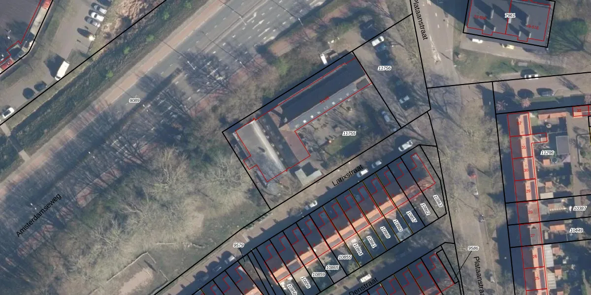 Larixstraat 64 is gelegen op kadastraal perceel AMF00D11755. Deze kadastrale aanduiding is uniek en wordt gebruikt door het Kadaster om eigendomsrechten en andere zakelijke rechten vast te leggen. Het perceel maakt onderdeel uit van de kadastrale gemeente Amersfoort.