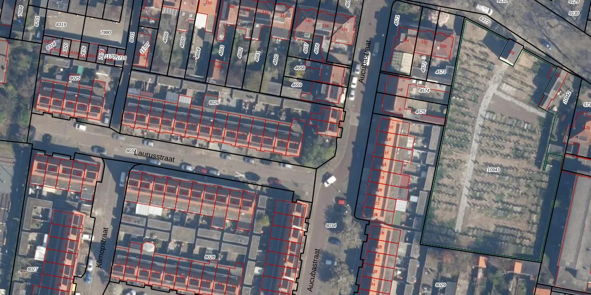 Het perceel waarop Laurusstraat 1 staat heeft een oppervlakte van 1598 m². Dit is een zeer groot perceel. De perceeloppervlakte wordt geregistreerd door het Kadaster. Gedetailleerde informatie over de maten van dit perceel kunt u vinden in het rapport Kadastrale kaart met maatvoering van Laurusstraat 1.