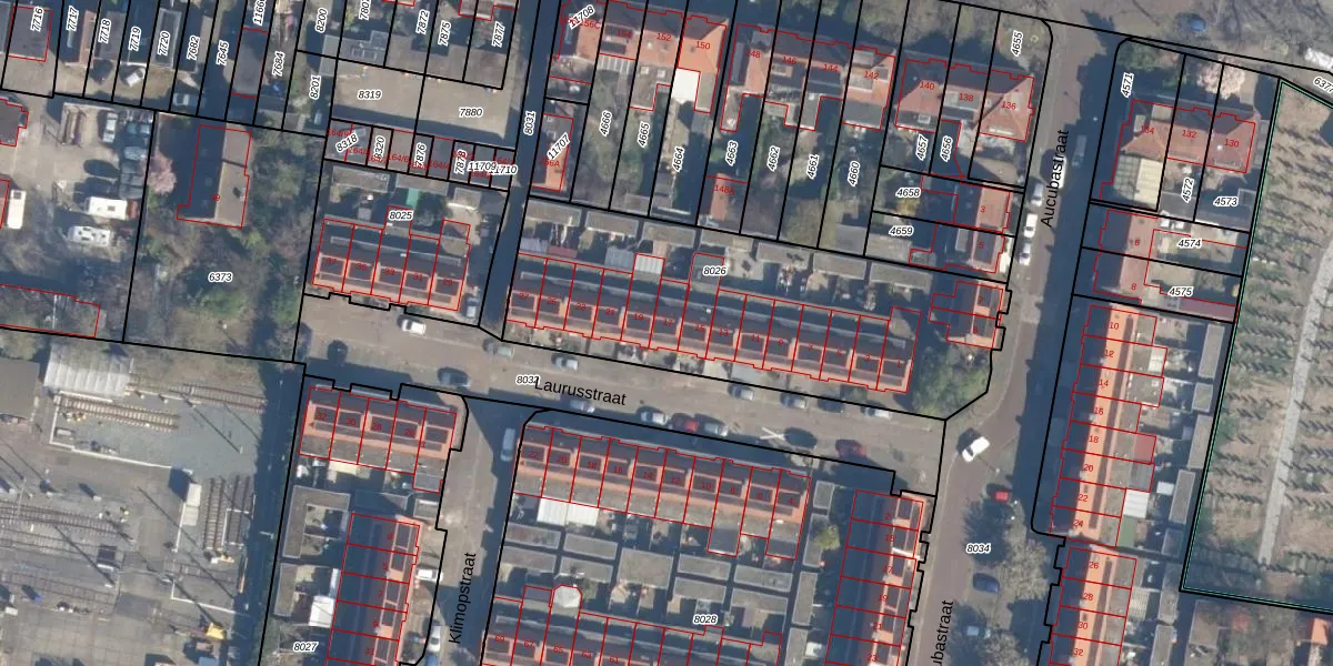 Het perceel waarop Laurusstraat 17 staat heeft een oppervlakte van 1598 m². Dit is een zeer groot perceel. De perceeloppervlakte wordt geregistreerd door het Kadaster. Gedetailleerde informatie over de maten van dit perceel kunt u vinden in het rapport Kadastrale kaart met maatvoering van Laurusstraat 17.