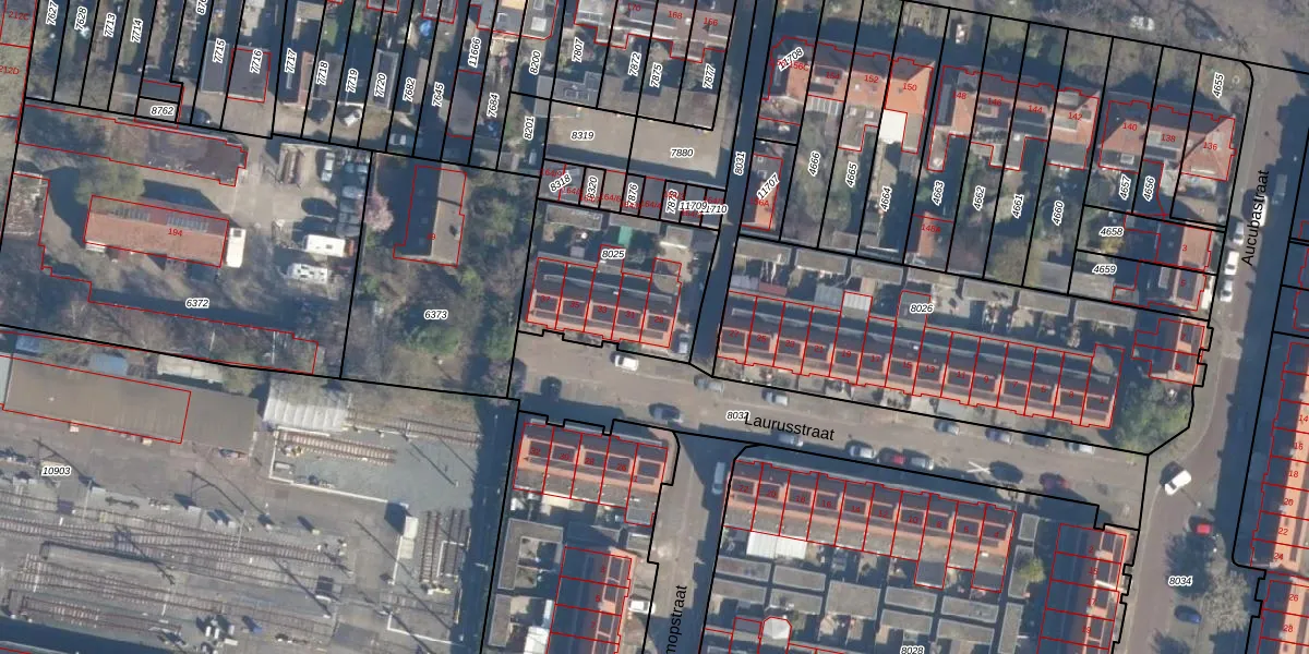 Het perceel waarop Laurusstraat 29 staat heeft een oppervlakte van 556 m². Dit is een groot perceel. De perceeloppervlakte wordt geregistreerd door het Kadaster. Gedetailleerde informatie over de maten van dit perceel kunt u vinden in het rapport Kadastrale kaart met maatvoering van Laurusstraat 29.