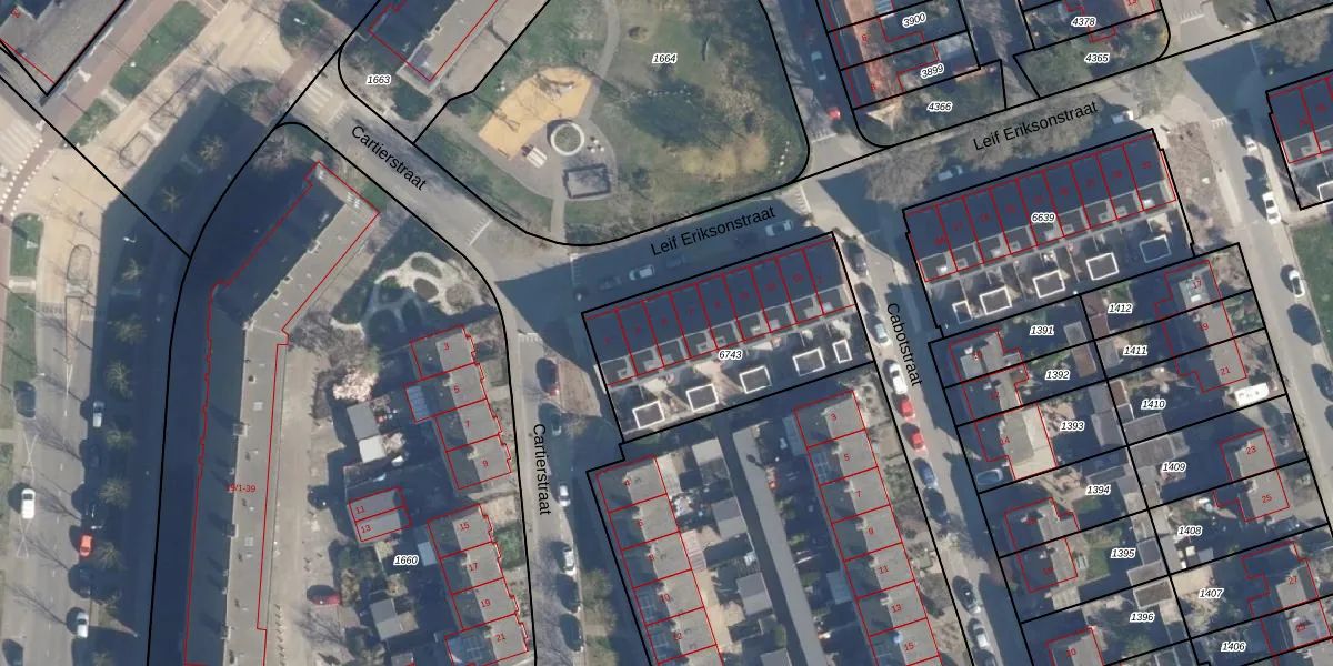 Leif Eriksonstraat 5 is gelegen op kadastraal perceel AMF00G6743. Deze kadastrale aanduiding is uniek en wordt gebruikt door het Kadaster om eigendomsrechten en andere zakelijke rechten vast te leggen. Het perceel maakt onderdeel uit van de kadastrale gemeente Amersfoort.