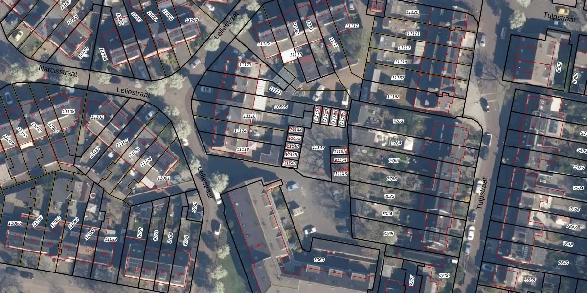 Gebruik de zoekbalk of klik op een perceel voor informatie over de adressen binnen dit perceel.