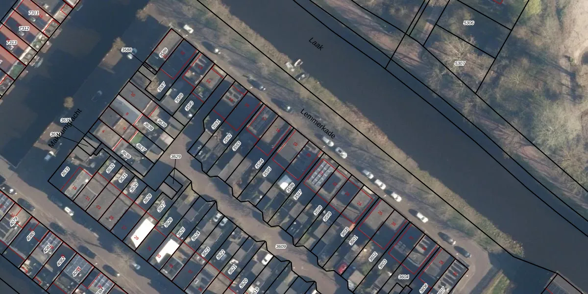 Lemmerkade 19 is gelegen op kadastraal perceel HLD02B3595. Deze kadastrale aanduiding is uniek en wordt gebruikt door het Kadaster om eigendomsrechten en andere zakelijke rechten vast te leggen. Het perceel maakt onderdeel uit van de kadastrale gemeente Hoogland.