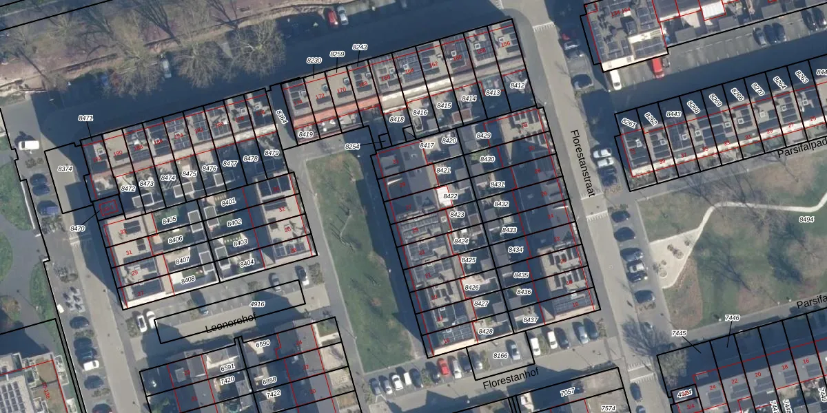 Gebruik de zoekbalk of klik op een perceel voor informatie over de adressen binnen dit perceel.