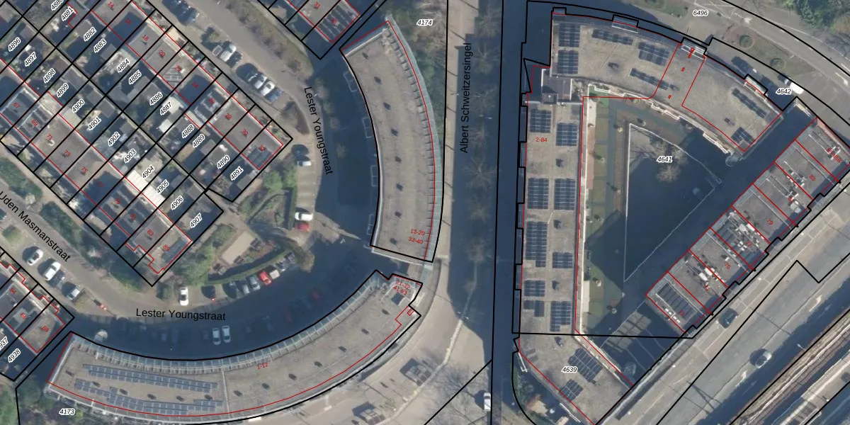 Lester Youngstraat 19 is gelegen op kadastraal perceel AMF00K4174. Deze kadastrale aanduiding is uniek en wordt gebruikt door het Kadaster om eigendomsrechten en andere zakelijke rechten vast te leggen. Het perceel maakt onderdeel uit van de kadastrale gemeente Amersfoort.