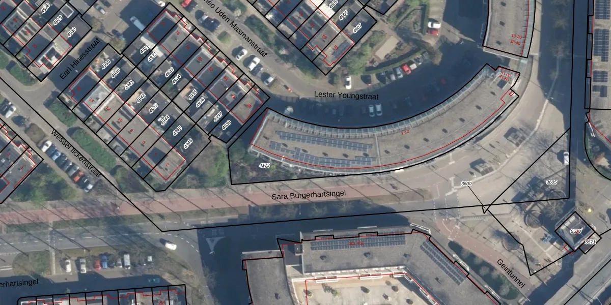 Het perceel waarop Lester Youngstraat 51 staat heeft een oppervlakte van 1635 m². Dit is een zeer groot perceel. De perceeloppervlakte wordt geregistreerd door het Kadaster. Gedetailleerde informatie over de maten van dit perceel kunt u vinden in het rapport Kadastrale kaart met maatvoering van Lester Youngstraat 51.