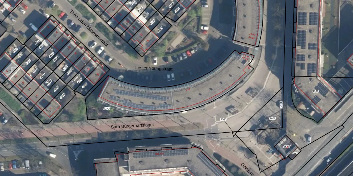 Lester Youngstraat 6 is gelegen op kadastraal perceel AMF00K4173. Deze kadastrale aanduiding is uniek en wordt gebruikt door het Kadaster om eigendomsrechten en andere zakelijke rechten vast te leggen. Het perceel maakt onderdeel uit van de kadastrale gemeente Amersfoort.