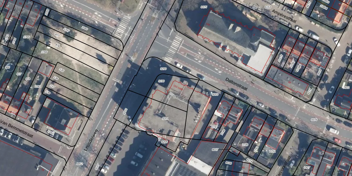 Leusderweg 112 is gelegen op kadastraal perceel AMF00B9199. Deze kadastrale aanduiding is uniek en wordt gebruikt door het Kadaster om eigendomsrechten en andere zakelijke rechten vast te leggen. Het perceel maakt onderdeel uit van de kadastrale gemeente Amersfoort.