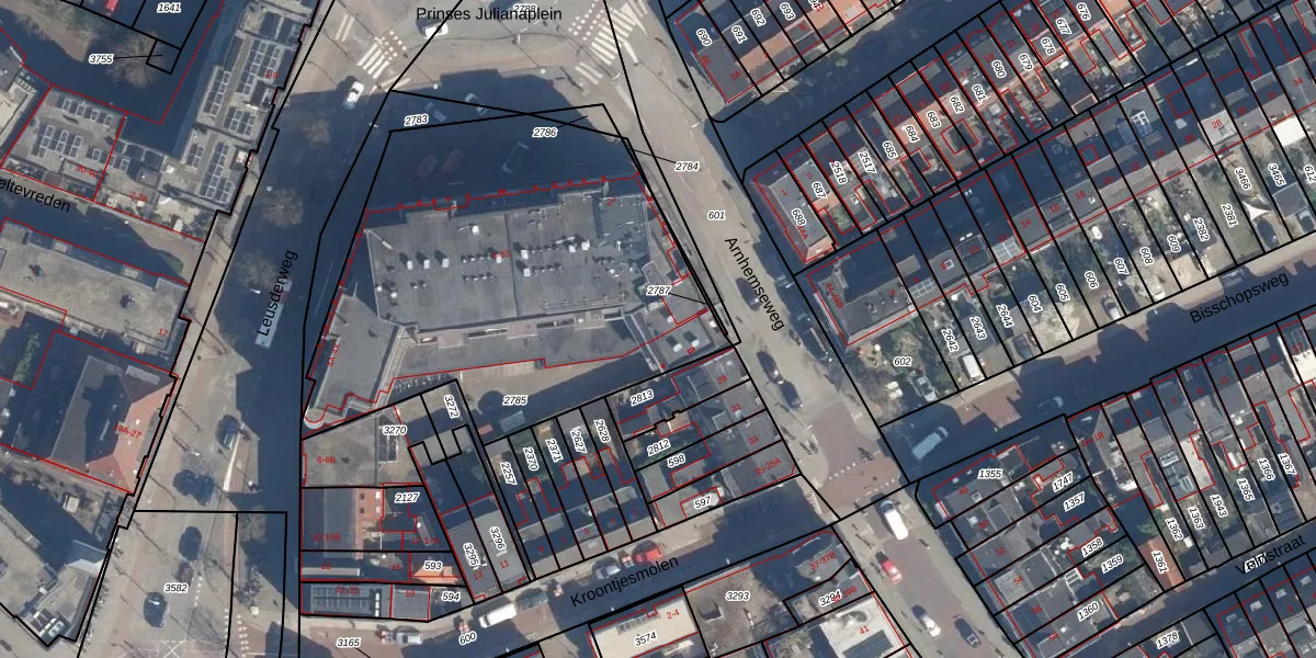 Het perceel waarop het adres ligt is AMF00-H-2785. De afkorting 'AMF00' staat voor kadastrale gemeente Amersfoort. De oppervlakte van het perceel is 2136 m². Dat is groter dan gemiddeld in Amersfoort, waar de gemiddelde perceeloppervlakte op 960,23 m² ligt. Het kleinste perceel in de kadastrale gemeente is 0 m² groot. De grootste perceeloppervlakte is 1,12 km². Op het perceel zijn 72 adressen aanwezig. De huidige grenzen van het perceel zijn digitaal in de Basisregistratie Kadaster (BRK) geregistreerd op 23-07-2001.