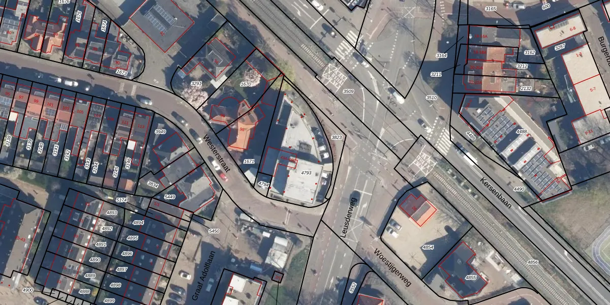 Het perceel waarop Leusderweg 45-F staat heeft een oppervlakte van 679 m². Dit is een groot perceel. De perceeloppervlakte wordt geregistreerd door het Kadaster. Gedetailleerde informatie over de maten van dit perceel kunt u vinden in het rapport Kadastrale kaart met maatvoering van Leusderweg 45-F.