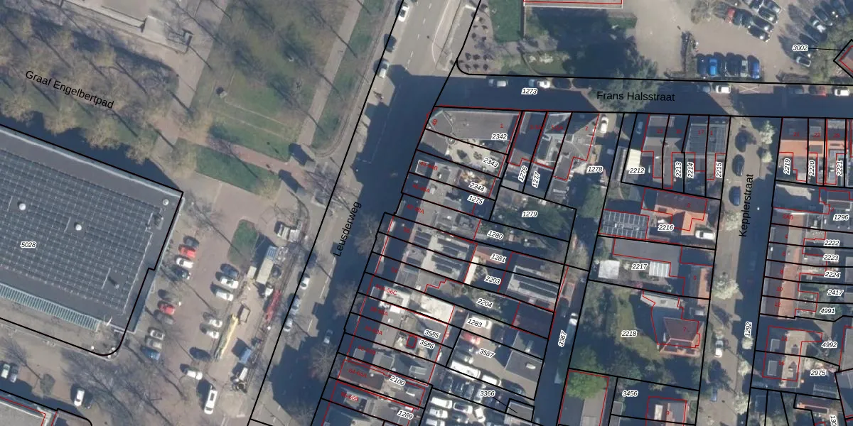 Leusderweg 48-A is gelegen op kadastraal perceel AMF00H1280. Deze kadastrale aanduiding is uniek en wordt gebruikt door het Kadaster om eigendomsrechten en andere zakelijke rechten vast te leggen. Het perceel maakt onderdeel uit van de kadastrale gemeente Amersfoort.
