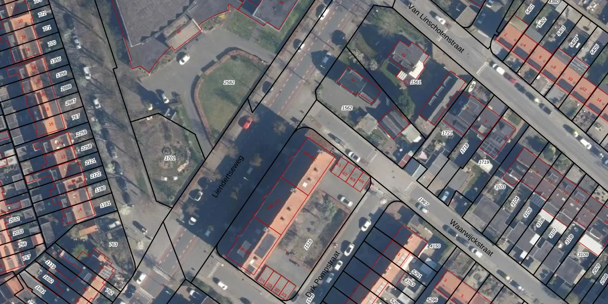Liendertseweg 45-A is gelegen op kadastraal perceel AMF00G1516. Deze kadastrale aanduiding is uniek en wordt gebruikt door het Kadaster om eigendomsrechten en andere zakelijke rechten vast te leggen. Het perceel maakt onderdeel uit van de kadastrale gemeente Amersfoort.
