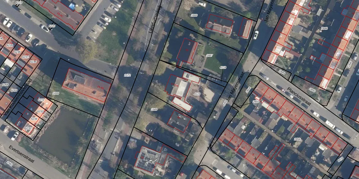 Liendertseweg 57-A is gelegen op kadastraal perceel AMF00G4119. Deze kadastrale aanduiding is uniek en wordt gebruikt door het Kadaster om eigendomsrechten en andere zakelijke rechten vast te leggen. Het perceel maakt onderdeel uit van de kadastrale gemeente Amersfoort.