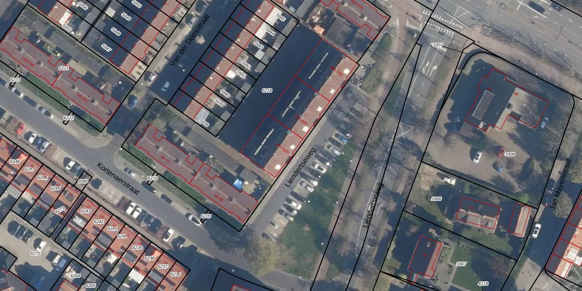 Liendertseweg 62-A is gelegen op kadastraal perceel AMF00G6218. Deze kadastrale aanduiding is uniek en wordt gebruikt door het Kadaster om eigendomsrechten en andere zakelijke rechten vast te leggen. Het perceel maakt onderdeel uit van de kadastrale gemeente Amersfoort.
