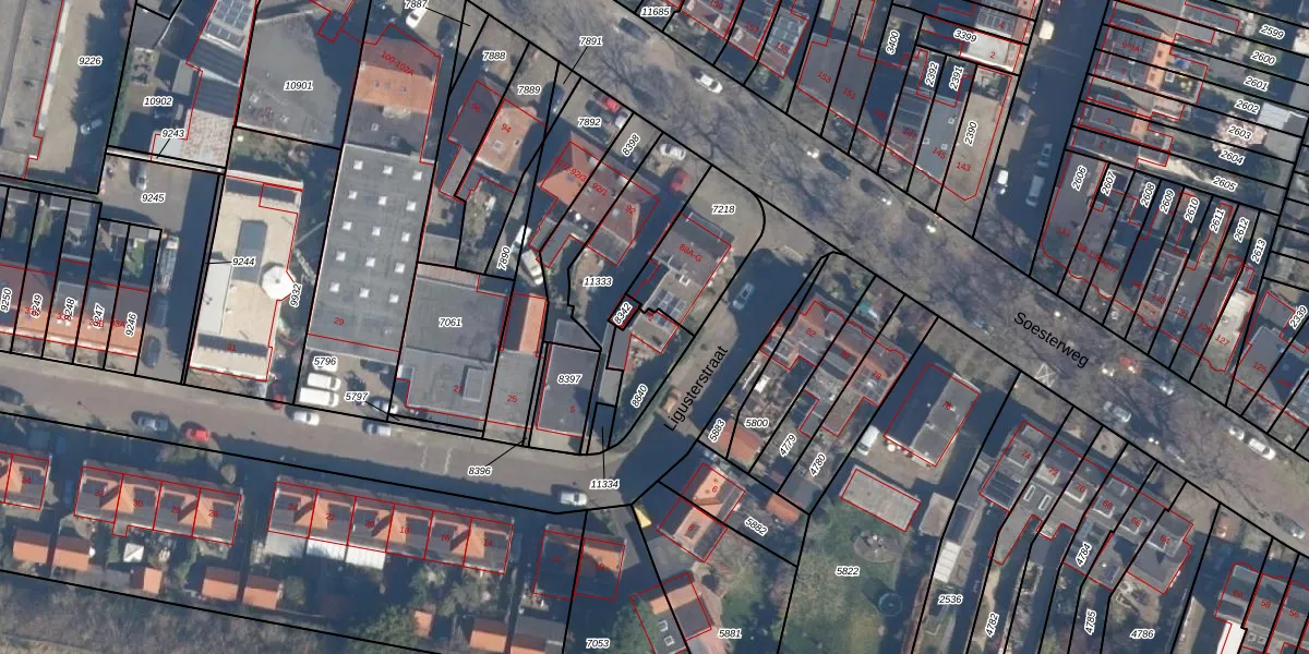 Ligusterstraat 1 is gelegen op kadastraal perceel AMF00D8840. Deze kadastrale aanduiding is uniek en wordt gebruikt door het Kadaster om eigendomsrechten en andere zakelijke rechten vast te leggen. Het perceel maakt onderdeel uit van de kadastrale gemeente Amersfoort.