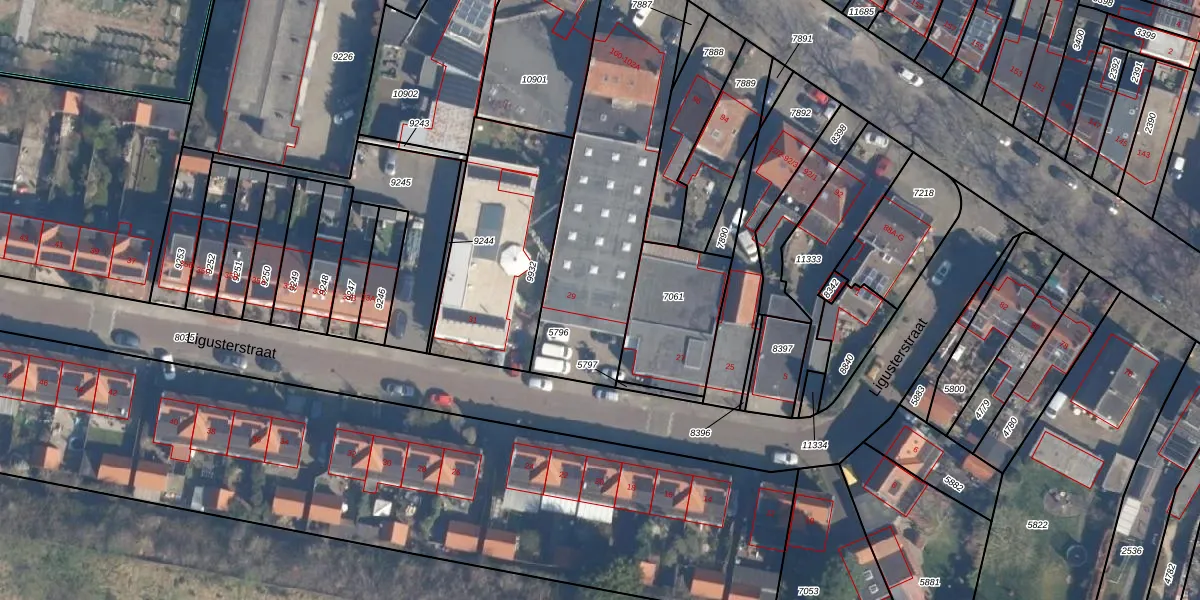 Het perceel waarop Ligusterstraat 29 staat heeft een oppervlakte van 1005 m². Dit is een zeer groot perceel. De perceeloppervlakte wordt geregistreerd door het Kadaster. Gedetailleerde informatie over de maten van dit perceel kunt u vinden in het rapport Kadastrale kaart met maatvoering van Ligusterstraat 29.