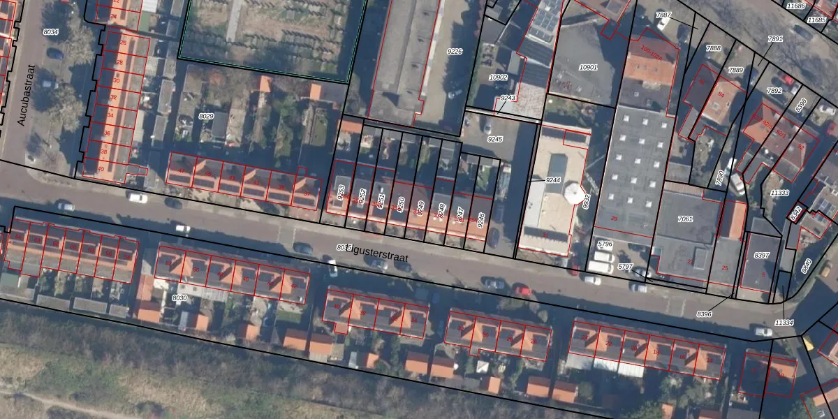 Gebruik de zoekbalk of klik op een perceel voor informatie over de adressen binnen dit perceel.