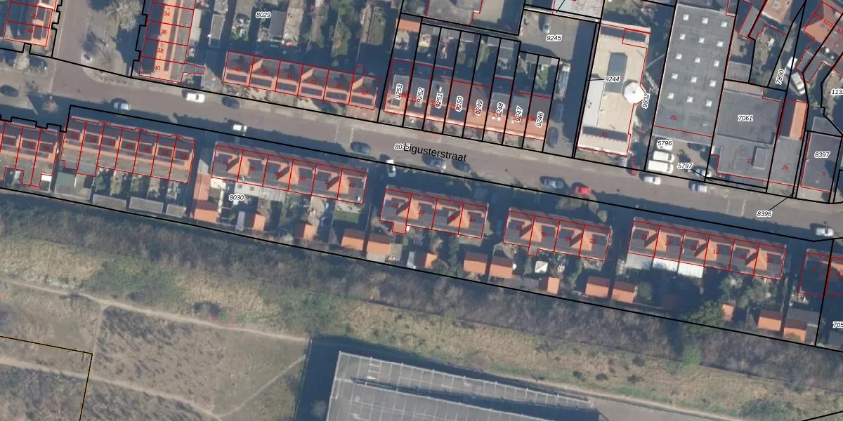 Het perceel waarop Ligusterstraat 38 staat heeft een oppervlakte van 5643 m². Dit is een zeer groot perceel. De perceeloppervlakte wordt geregistreerd door het Kadaster. Gedetailleerde informatie over de maten van dit perceel kunt u vinden in het rapport Kadastrale kaart met maatvoering van Ligusterstraat 38.