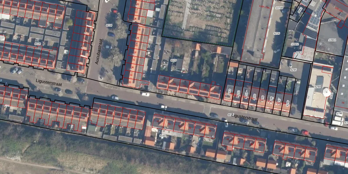 Het perceel waarop Ligusterstraat 45 staat heeft een oppervlakte van 2975 m². Dit is een zeer groot perceel. De perceeloppervlakte wordt geregistreerd door het Kadaster. Gedetailleerde informatie over de maten van dit perceel kunt u vinden in het rapport Kadastrale kaart met maatvoering van Ligusterstraat 45.