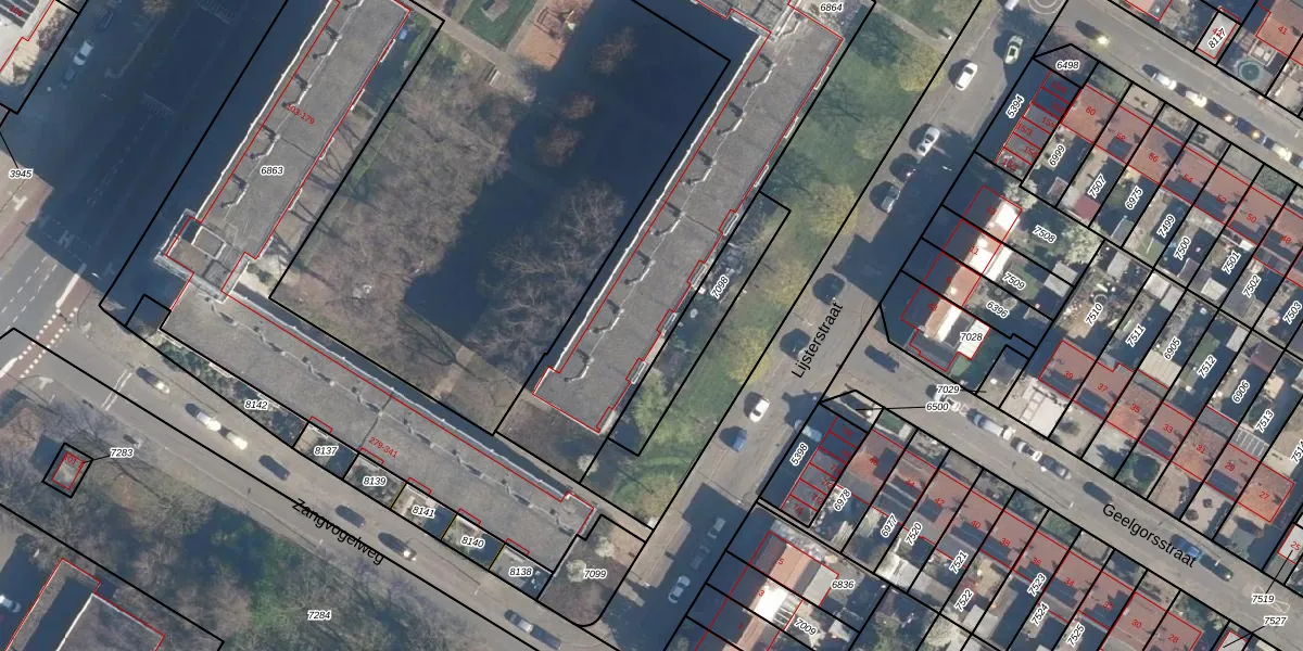 Het perceel waarop Lijsterstraat 34 staat heeft een oppervlakte van 2294 m². Dit is een zeer groot perceel. De perceeloppervlakte wordt geregistreerd door het Kadaster. Gedetailleerde informatie over de maten van dit perceel kunt u vinden in het rapport Kadastrale kaart met maatvoering van Lijsterstraat 34.