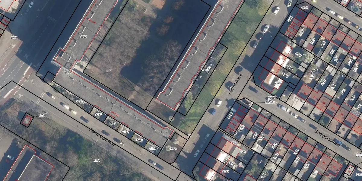 Het perceel waarop Lijsterstraat 56 staat heeft een oppervlakte van 2294 m². Dit is een zeer groot perceel. De perceeloppervlakte wordt geregistreerd door het Kadaster. Gedetailleerde informatie over de maten van dit perceel kunt u vinden in het rapport Kadastrale kaart met maatvoering van Lijsterstraat 56.
