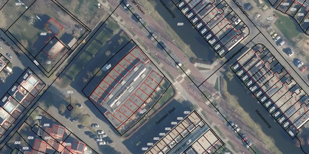 Het perceel waarop Linnaeus-serre 1 staat heeft een oppervlakte van 1340 m². Dit is een zeer groot perceel. De perceeloppervlakte wordt geregistreerd door het Kadaster. Gedetailleerde informatie over de maten van dit perceel kunt u vinden in het rapport Kadastrale kaart met maatvoering van Linnaeus-serre 1.