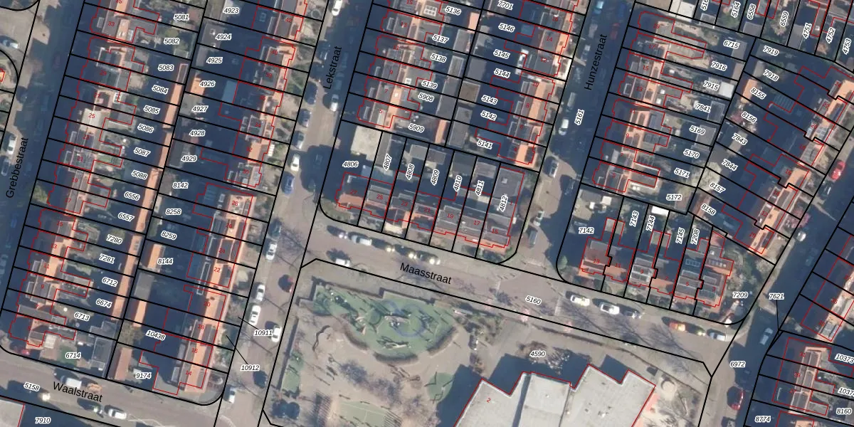 Gebruik de zoekbalk of klik op een perceel voor informatie over de adressen binnen dit perceel.