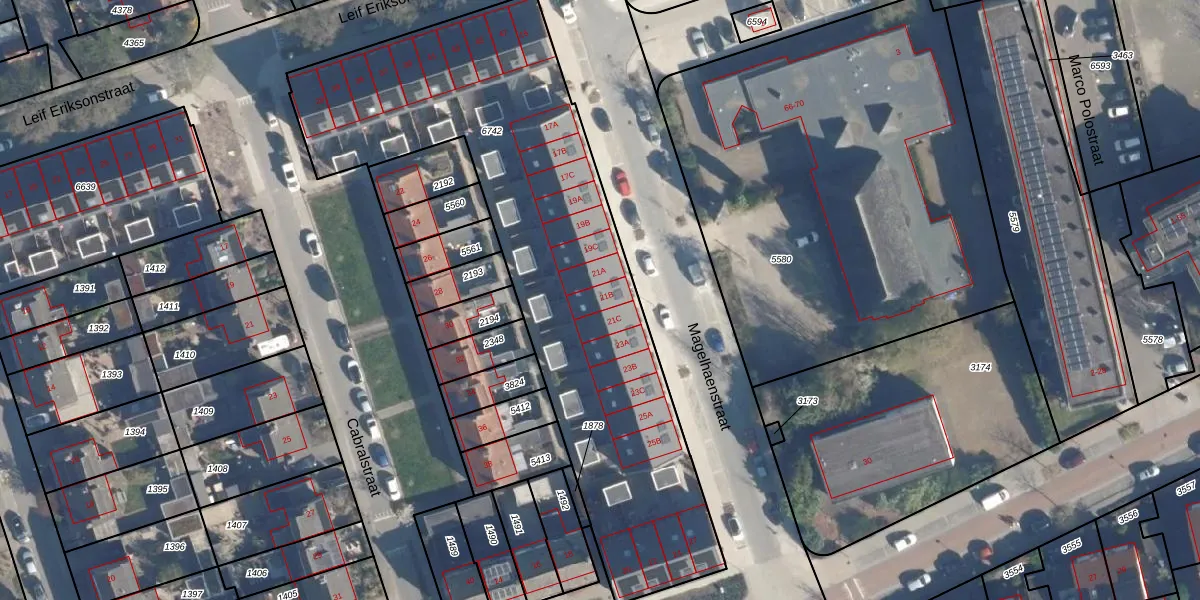 Het perceel waarop Magelhaenstraat 21-B staat heeft een oppervlakte van 2376 m². Dit is een zeer groot perceel. De perceeloppervlakte wordt geregistreerd door het Kadaster. Gedetailleerde informatie over de maten van dit perceel kunt u vinden in het rapport Kadastrale kaart met maatvoering van Magelhaenstraat 21-B.