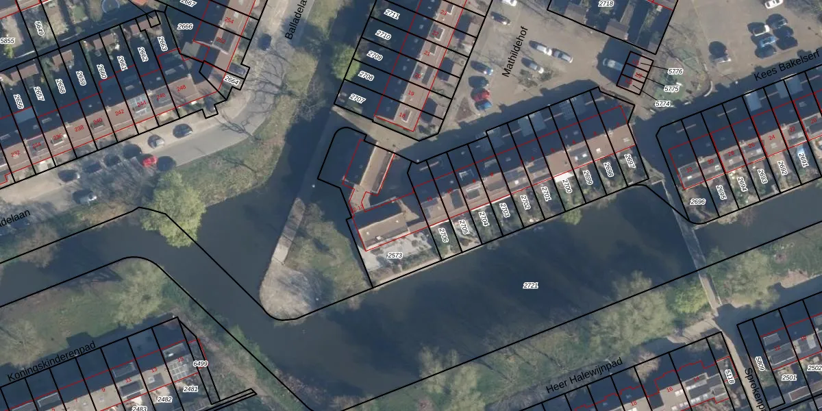 Het perceel waarop Mathildehof 12 staat heeft een oppervlakte van 612 m². Dit is een groot perceel. De perceeloppervlakte wordt geregistreerd door het Kadaster. Gedetailleerde informatie over de maten van dit perceel kunt u vinden in het rapport Kadastrale kaart met maatvoering van Mathildehof 12.