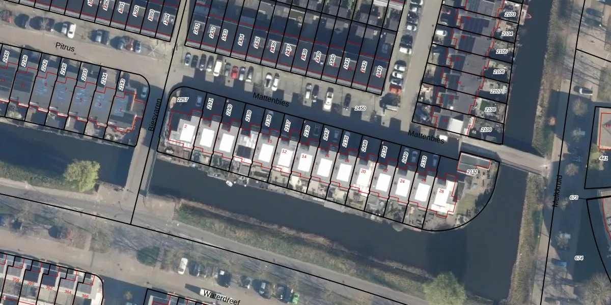 Het perceel waarop Mattenbies 14 staat heeft een oppervlakte van 155 m². Dit is een middelgroot perceel. De perceeloppervlakte wordt geregistreerd door het Kadaster. Gedetailleerde informatie over de maten van dit perceel kunt u vinden in het rapport Kadastrale kaart met maatvoering van Mattenbies 14.