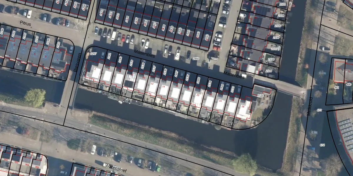 Het perceel waarop Mattenbies 16 staat heeft een oppervlakte van 156 m². Dit is een middelgroot perceel. De perceeloppervlakte wordt geregistreerd door het Kadaster. Gedetailleerde informatie over de maten van dit perceel kunt u vinden in het rapport Kadastrale kaart met maatvoering van Mattenbies 16.