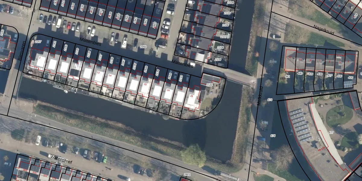 Het perceel waarop Mattenbies 26 staat heeft een oppervlakte van 163 m². Dit is een middelgroot perceel. De perceeloppervlakte wordt geregistreerd door het Kadaster. Gedetailleerde informatie over de maten van dit perceel kunt u vinden in het rapport Kadastrale kaart met maatvoering van Mattenbies 26.