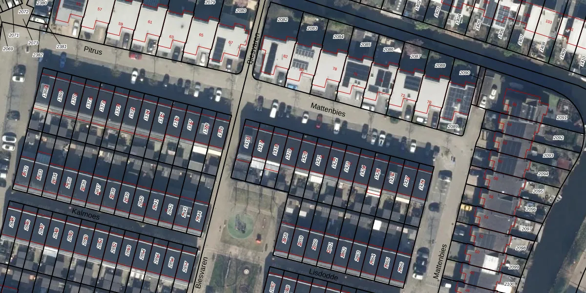 Gebruik de zoekbalk of klik op een perceel voor informatie over de adressen binnen dit perceel.