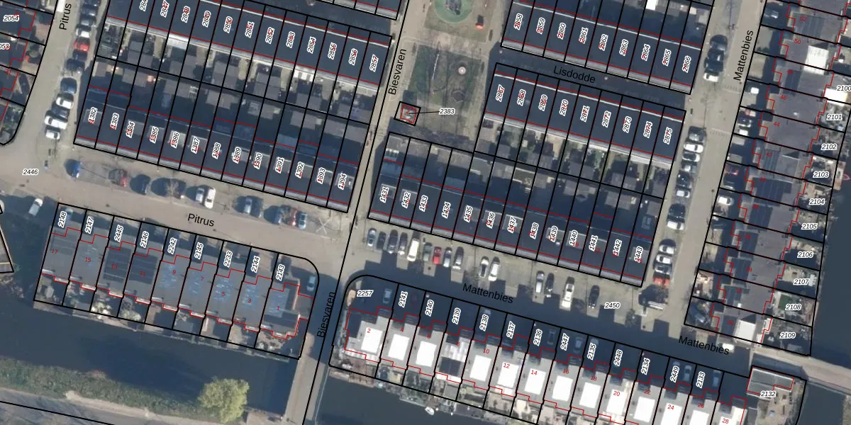 Gebruik de zoekbalk of klik op een perceel voor informatie over de adressen binnen dit perceel.