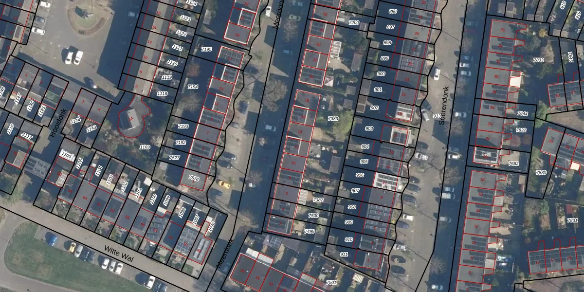 Het perceel waarop Meerdonk 12 staat heeft een oppervlakte van 1289 m². Dit is een zeer groot perceel. De perceeloppervlakte wordt geregistreerd door het Kadaster. Gedetailleerde informatie over de maten van dit perceel kunt u vinden in het rapport Kadastrale kaart met maatvoering van Meerdonk 12.