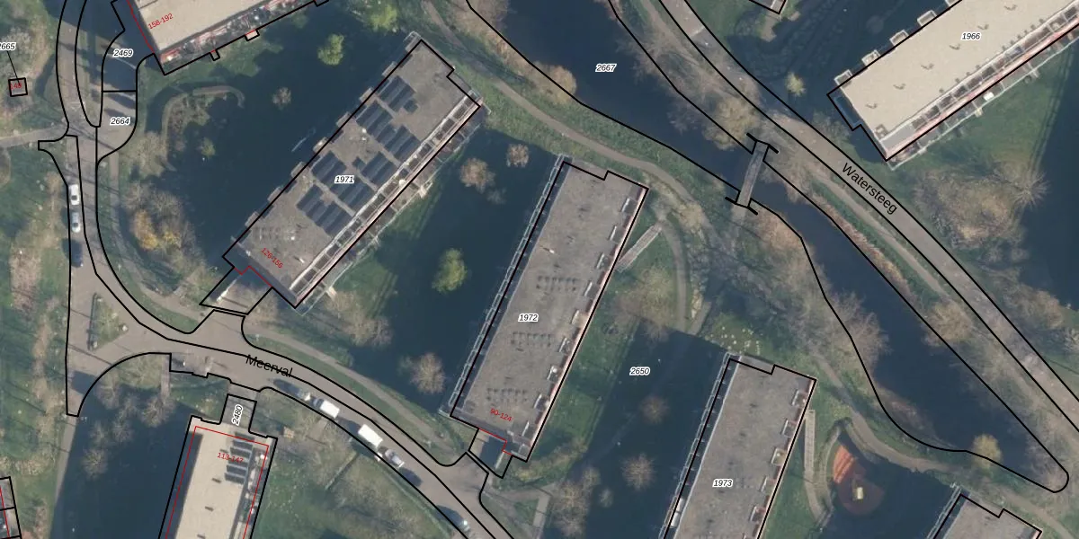 Het perceel waarop Meerval 112 staat heeft een oppervlakte van 905 m². Dit is een groot perceel. De perceeloppervlakte wordt geregistreerd door het Kadaster. Gedetailleerde informatie over de maten van dit perceel kunt u vinden in het rapport Kadastrale kaart met maatvoering van Meerval 112.