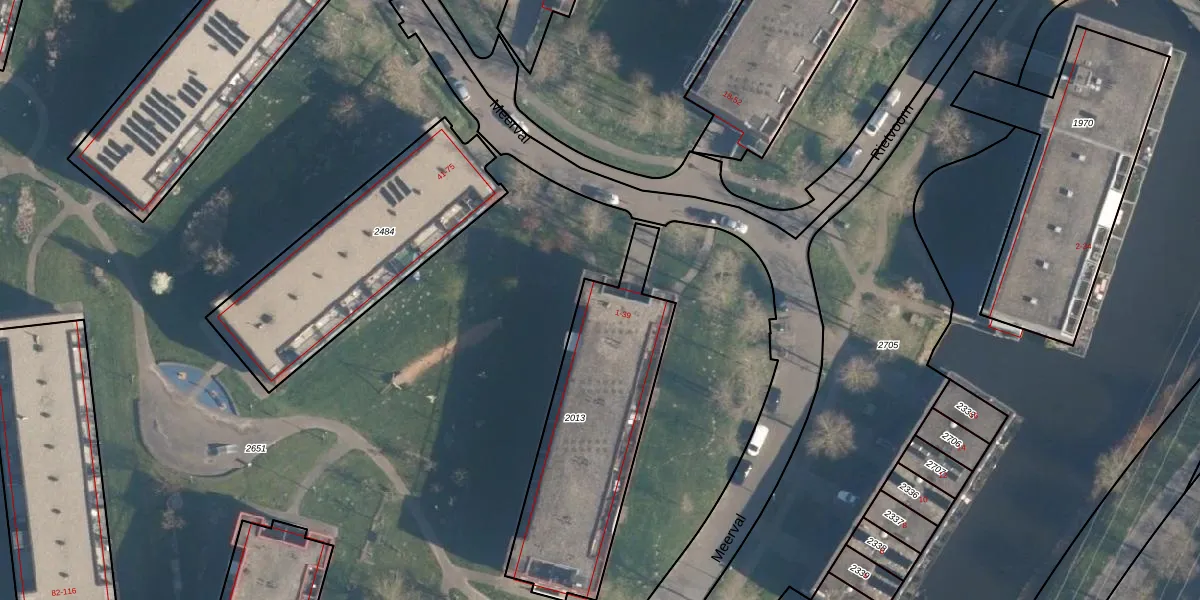 Het perceel waarop Meerval 21 staat heeft een oppervlakte van 861 m². Dit is een groot perceel. De perceeloppervlakte wordt geregistreerd door het Kadaster. Gedetailleerde informatie over de maten van dit perceel kunt u vinden in het rapport Kadastrale kaart met maatvoering van Meerval 21.