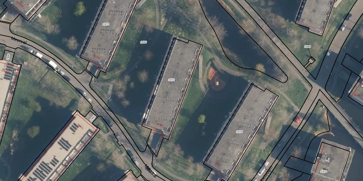 Het perceel waarop Meerval 70 staat heeft een oppervlakte van 945 m². Dit is een groot perceel. De perceeloppervlakte wordt geregistreerd door het Kadaster. Gedetailleerde informatie over de maten van dit perceel kunt u vinden in het rapport Kadastrale kaart met maatvoering van Meerval 70.