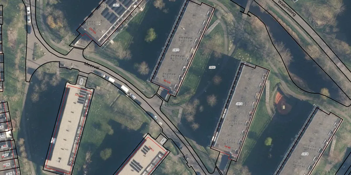 Het perceel waarop Meerval 90 staat heeft een oppervlakte van 905 m². Dit is een groot perceel. De perceeloppervlakte wordt geregistreerd door het Kadaster. Gedetailleerde informatie over de maten van dit perceel kunt u vinden in het rapport Kadastrale kaart met maatvoering van Meerval 90.