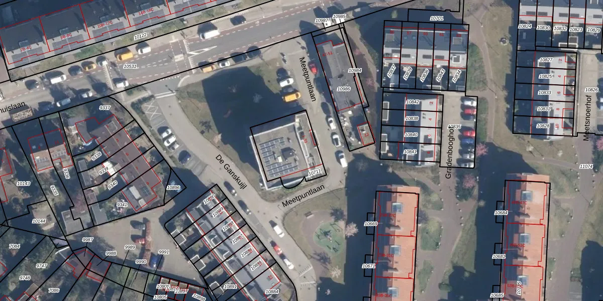 Het perceel waarop Meetpuntlaan 33 staat heeft een oppervlakte van 421 m². Dit is een groot perceel. De perceeloppervlakte wordt geregistreerd door het Kadaster. Gedetailleerde informatie over de maten van dit perceel kunt u vinden in het rapport Kadastrale kaart met maatvoering van Meetpuntlaan 33.