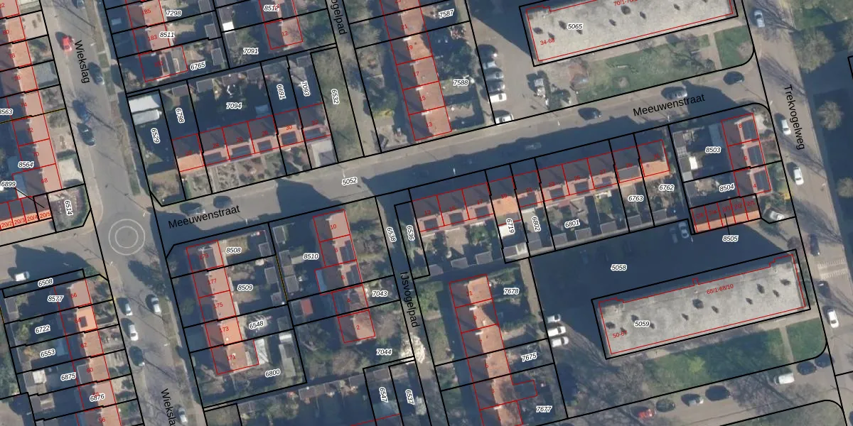 Het perceel waarop Meeuwenstraat 13 staat heeft een oppervlakte van 955 m². Dit is een groot perceel. De perceeloppervlakte wordt geregistreerd door het Kadaster. Gedetailleerde informatie over de maten van dit perceel kunt u vinden in het rapport Kadastrale kaart met maatvoering van Meeuwenstraat 13.
