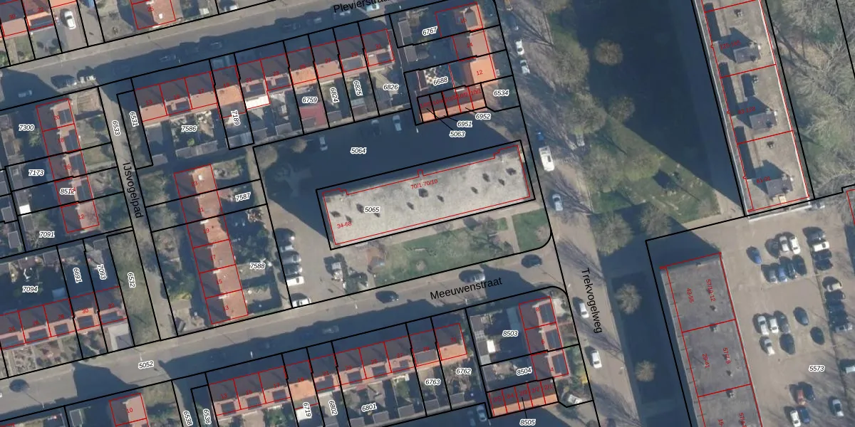 Het perceel waarop Meeuwenstraat 64 staat heeft een oppervlakte van 710 m². Dit is een groot perceel. De perceeloppervlakte wordt geregistreerd door het Kadaster. Gedetailleerde informatie over de maten van dit perceel kunt u vinden in het rapport Kadastrale kaart met maatvoering van Meeuwenstraat 64.