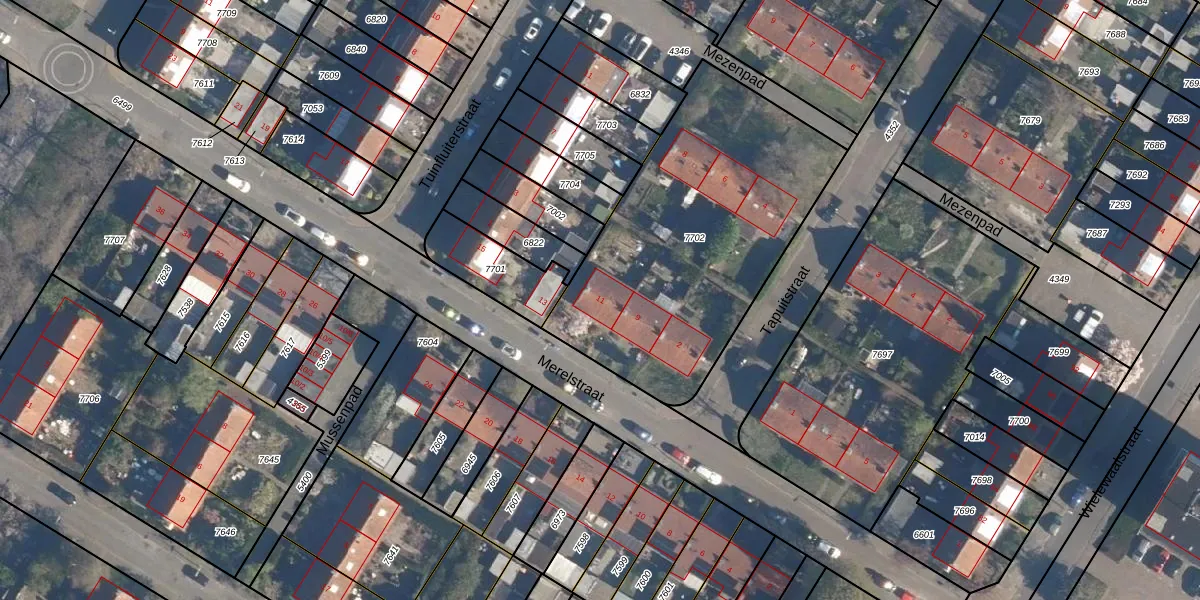 Het perceel waarop Merelstraat 11 staat heeft een oppervlakte van 1448 m². Dit is een zeer groot perceel. De perceeloppervlakte wordt geregistreerd door het Kadaster. Gedetailleerde informatie over de maten van dit perceel kunt u vinden in het rapport Kadastrale kaart met maatvoering van Merelstraat 11.