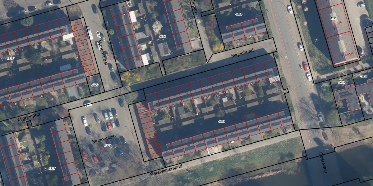 Het perceel waarop Mignonpad 18 staat heeft een oppervlakte van 3517 m². Dit is een zeer groot perceel. De perceeloppervlakte wordt geregistreerd door het Kadaster. Gedetailleerde informatie over de maten van dit perceel kunt u vinden in het rapport Kadastrale kaart met maatvoering van Mignonpad 18.