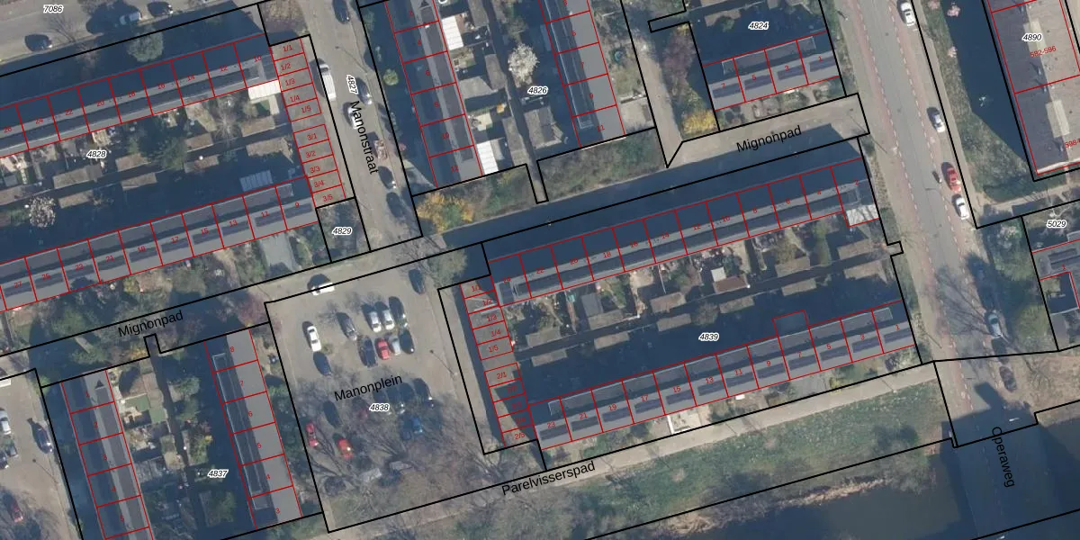 Het perceel waarop Mignonpad 22 staat heeft een oppervlakte van 3517 m². Dit is een zeer groot perceel. De perceeloppervlakte wordt geregistreerd door het Kadaster. Gedetailleerde informatie over de maten van dit perceel kunt u vinden in het rapport Kadastrale kaart met maatvoering van Mignonpad 22.